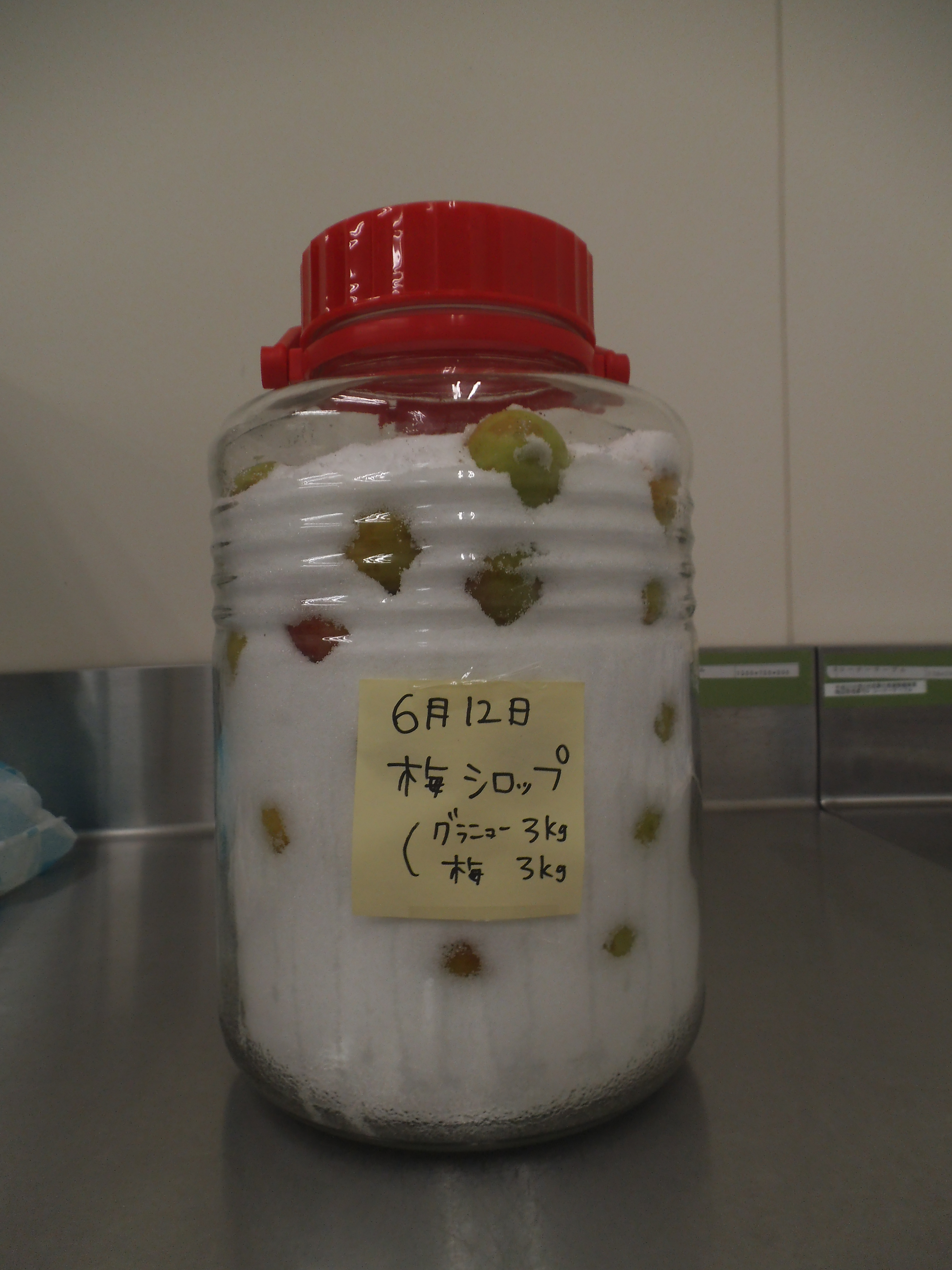 スモモソルベ登場です 「ソルベッチdoうきは」は果樹農家が経営しております。 果樹の作業も一年でもっとも忙しい時期に入ってまいりました。 ただいま「スモモ(大石早生 おおいしわせ)の収穫真っ最中です。 本日は「スモモソルベ」が今シーズン初登場しました。 あまずっぱく、後味さわやかなスモモソルベをぜひ食べに来てください。 次に登場するフルーツのジェラートは「梅ソルベ」です。 先日、青梅をつけました。3週間くらいでできあがるでしょうか。 毎日、瓶の蓋をあけると「ポンッ」と音がします。